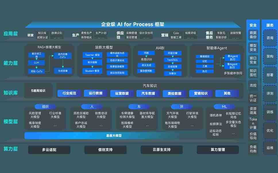 端到端的一站式AI工作空间深度融合了从企业战略规划到日常经营的全流程业务板块,,,,定向解决车企内部领域多、、、部门多、、、、链条长、、、场景碎片化等难题,,支持车企快速构建以AI为核心的生产力写作体系,,,实现任务执行与AI能力的无缝集成与交互
