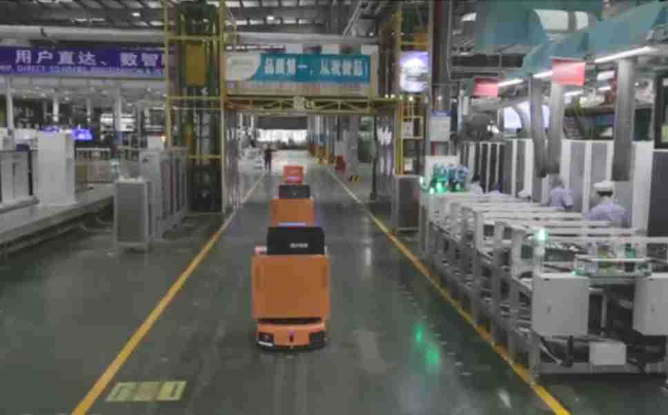 为车载冰箱物流配送打造的智能解决方案,,包含产中物流通过潜伏举升AMR搬运至线边,,产后成品物流智能仓储,,流程包含产中物流智能齐套入库,,,,线边安灯叫料AMR智能配送至线边,,成品入库、、、出库,,,,通过无人堆高车机器人,,智能仓储管理替代人工作业管理,,,,实现更高存储、、更高效率、、、、更具柔性化的解决方案。。