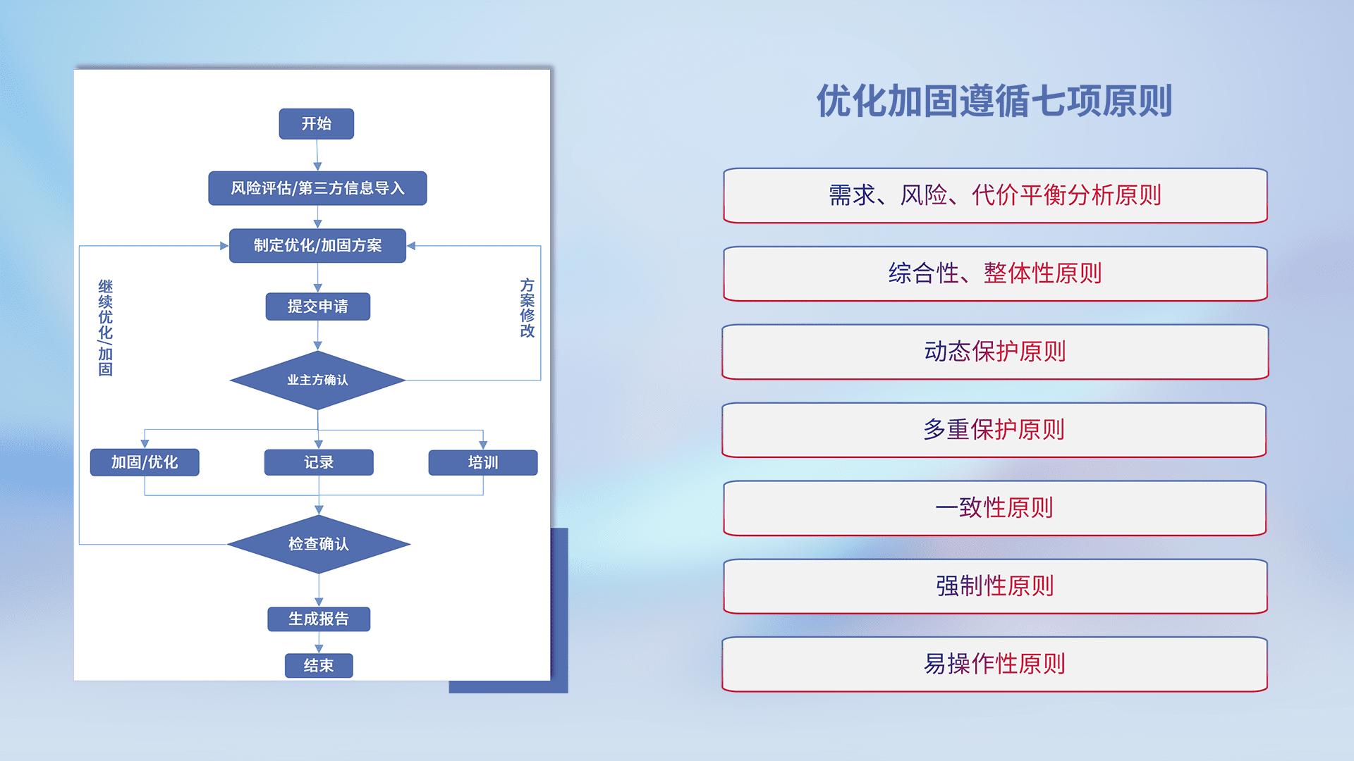 最大程度利用现有资产,,,对评估发现的问题进行封堵与整改,,,防止漏洞被利用,,提升整体网络安全性,,,为客户带来高标准的优化加固服务。。。。