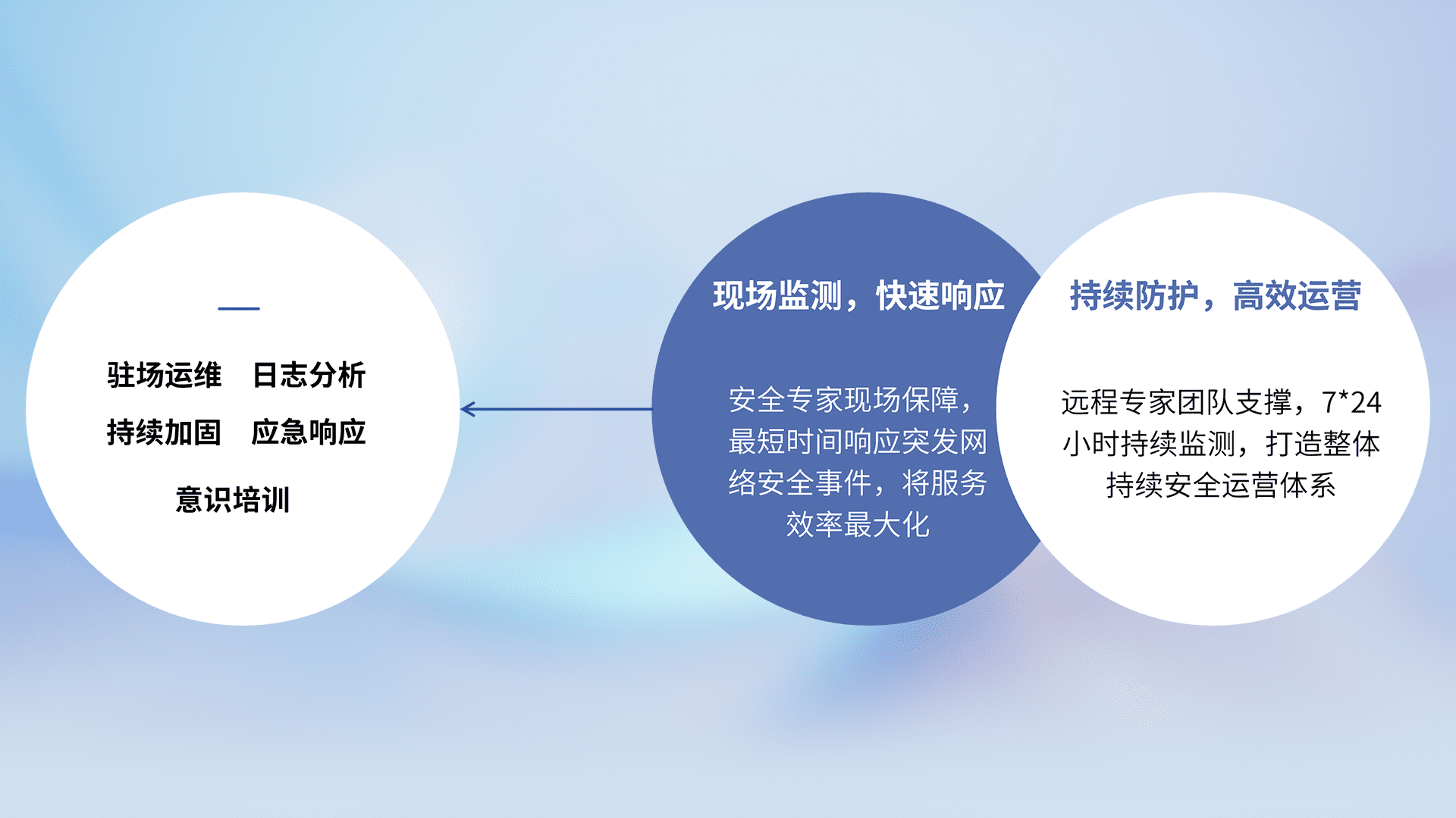 针对客户行业特性,,,,提供专属的一站式安全管理服务,,,,帮助客户全面感知网络空间威胁,,,通过安全专家的线上、、、线下防护支持,,实现风险闭环,,,,将安全保障常态化,,,,为客户打造常态化安全运维运营服务。。。